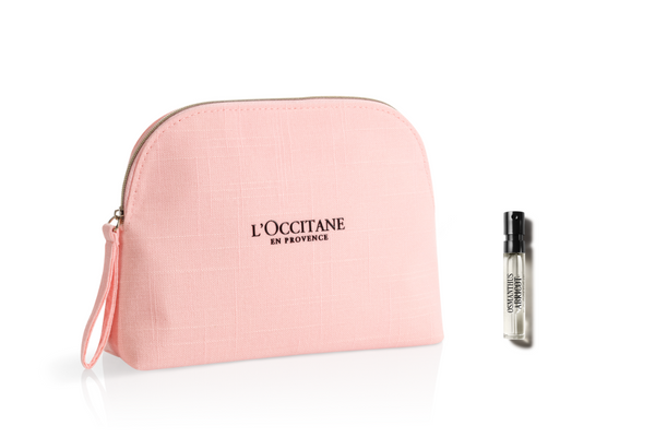 Receive a pink L'Occitane pouch and Osmanthus Eau de Toilette 1.2ml for a minimum purchase worth P4,000