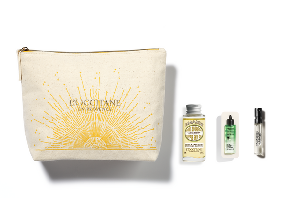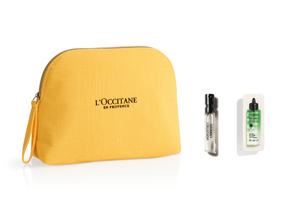 Receive a yellow L'Occitane pouch, Osmanthus Eau de Toilette 1.2ml and Anti Hair Loss Treatment 4ml for a minimum purchase worth P7,000